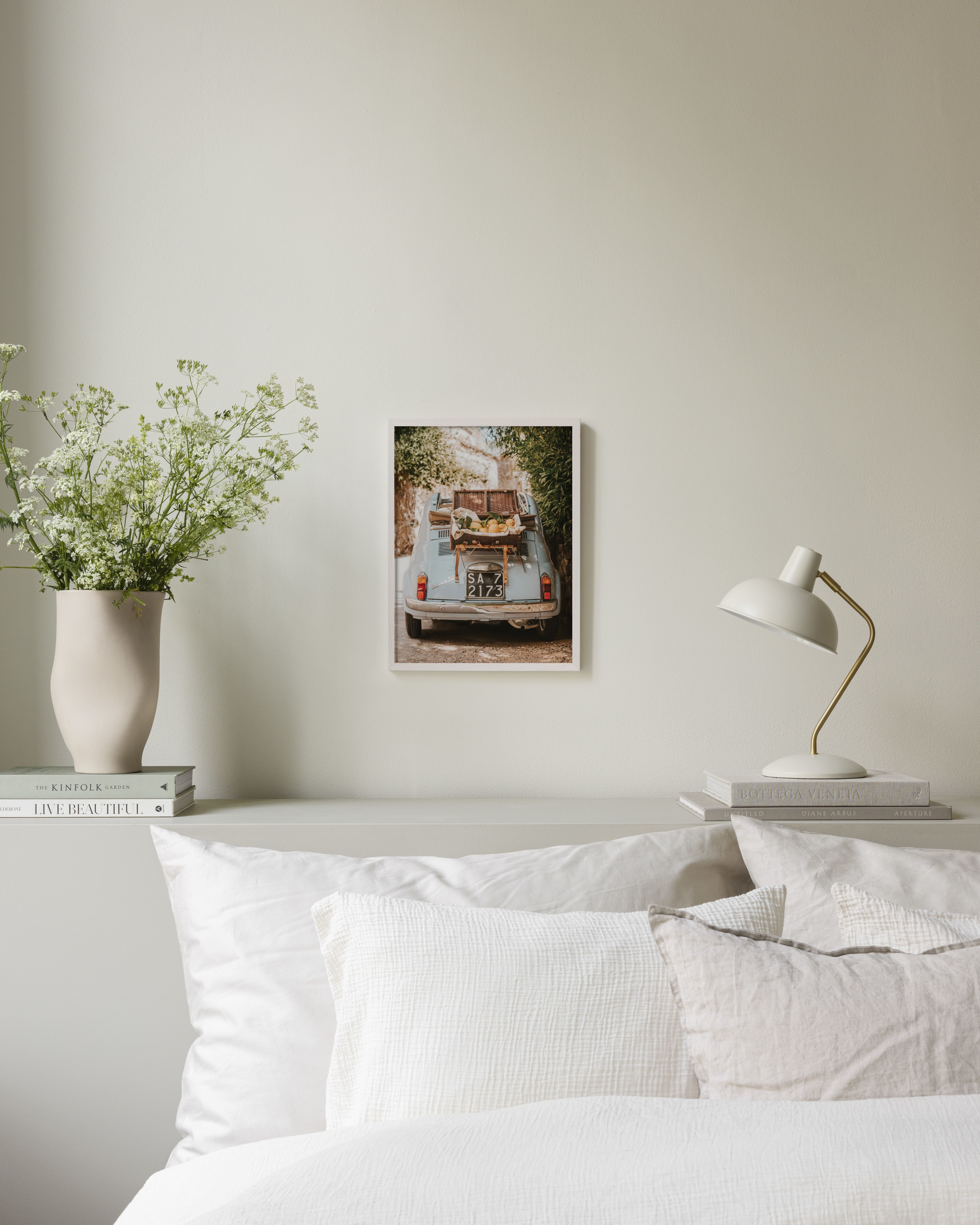 Italský piknik! Poddajte sa retro vlnám s týmto nostalgickým plagátom starého auta a citrónov.