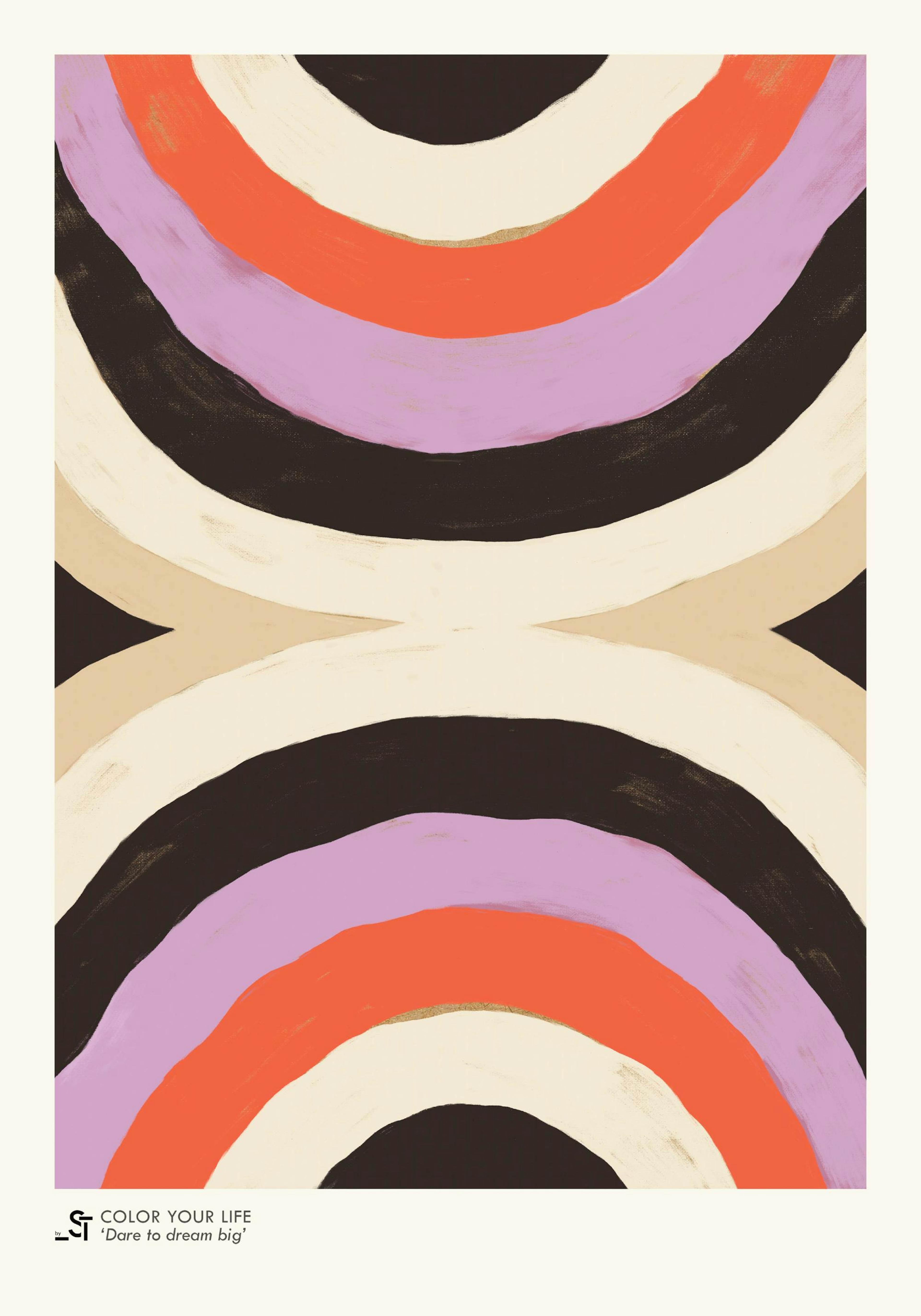 Maľba dvoch polkruhov odvrátených od seba v béžovej, hnedej, oranžovej a fialovej farbe. Skvelá a umelecká potlač s vintage farbami.