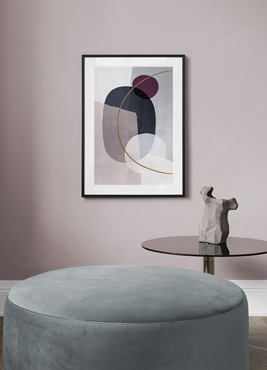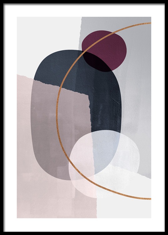 Dizajn z kategórie Handpicked Grafické abstraktné modro-ružové tvary s oranžovým polkruhom. Grafické umenie je fantastické, pretože ponúka nieco pre každého - vela motívov v rozmanitých farebných kombináciách.