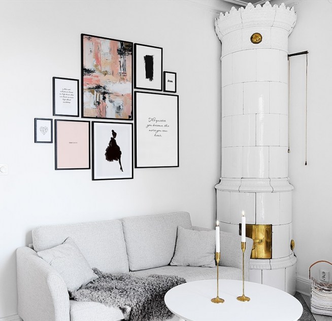 Abstrakt konstposter i rosa, svart, vitt och beige.