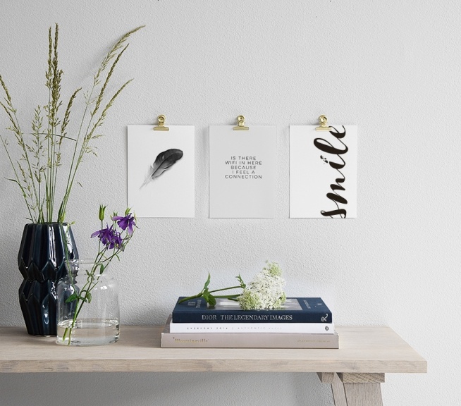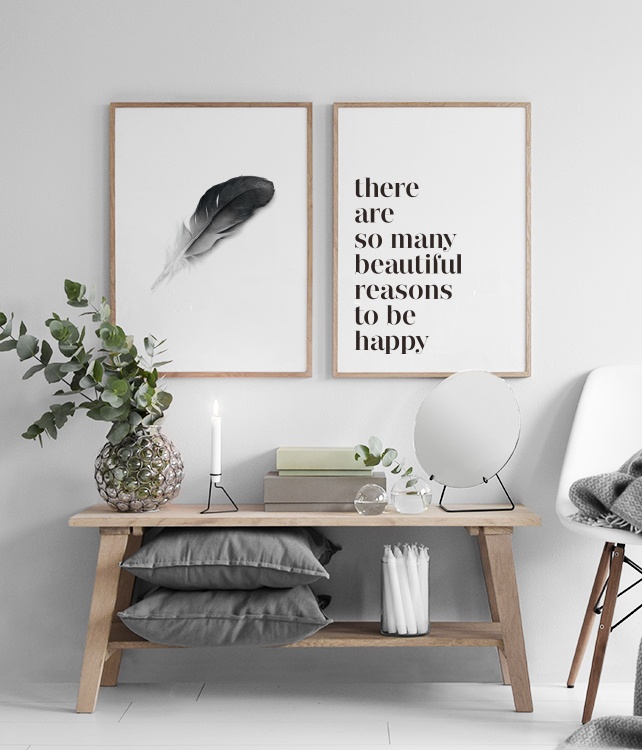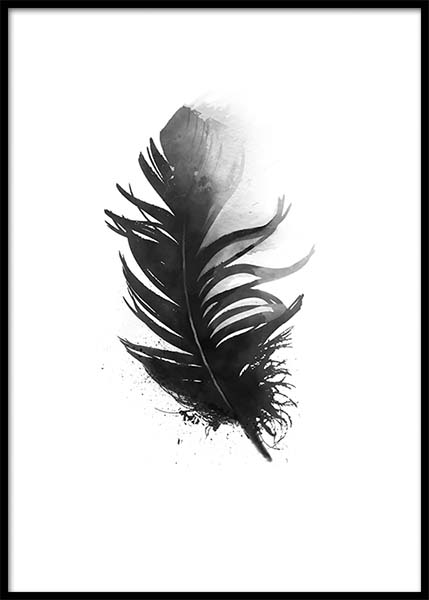 Posters, affischer i svartvitt. Snygg tavla med fjäder. Nordisk inredning.