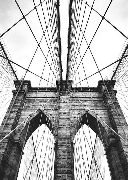 Dizajn z kategórie Handpicked Fotografia brooklynského mosta a jeho štýlovej architektúry. Čiernobiela umelecká fotografia vyzerá nádherne samostatne, ale aj v koláži s vašimi obľúbenými motívmi. Ďalšie plagáty štýlových fotografií miest, architektúry a s inými námetmi nájdete v kategórii „Umelecké fotografie“.