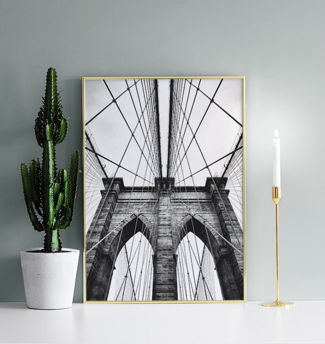 Poster med svartvit fotokonst, Brooklyn bridge. Tavla med foto.