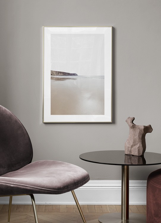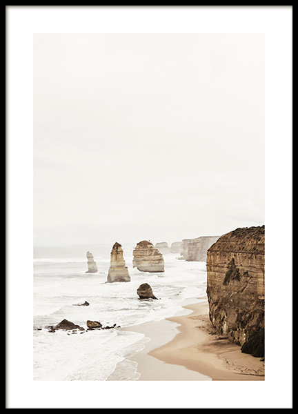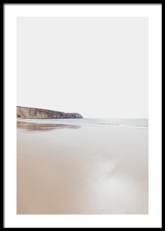 Dizajn z kategórie Handpicked Fotografia pláže s dlhým útesom a pokojnou morskou hladinou v pozadí. Vďaka jemnej a neutrálnej farebnej palete nám príroda zakaždým vyrazí dych. Preskúmajte kategóriu plnú prírodných plagátov a nájdite ladiace motívy!
