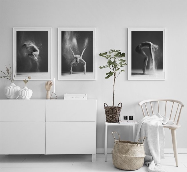 Affisch/poster med foto på en dansare. Vacker svartvit tavla.