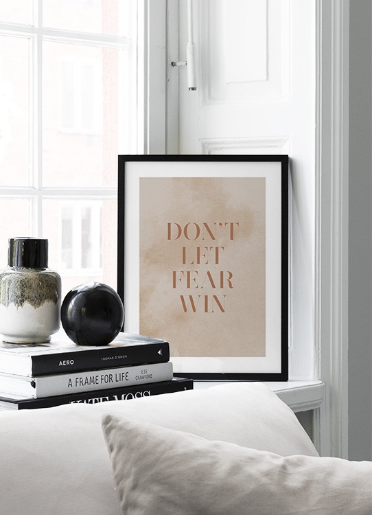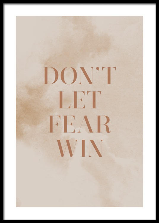 Dizajn z kategórie Handpicked Plagát s hnedým citátom „Don't let fear win“ na béžovom pozadí so škvrnitou štruktúrou. Život môže niekedy pôsobiť tvrdo a vzbudzovať v nás strach, ale tento plagát je tu na to, aby nám pripomenul, aby sme sa nenechali vydesiť a zastaviť.