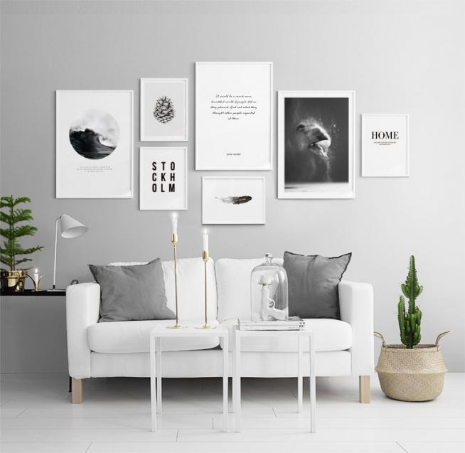 Svartvit poster med handritad illustration på kotte. Snygg tavla.