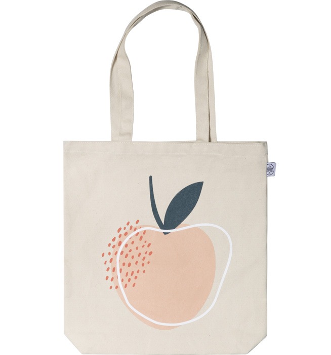 Dizajn z kategórie Handpicked Bavlnená taška prírodnej béžovej farby s motívom broskyne, bielym kruhom a ružovými bodkami. Táto milá taška sa stane vaším novým najlepším pomocníkom a nákupným partnerom! Bavlnené tašky z našej limitovanej kolekcie sú tlačené vo Švédsku a vyrobené zo 100% recyklovateľnej bavlny.