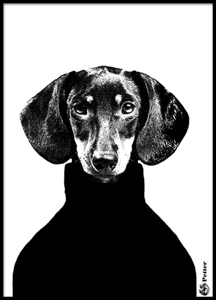 Dizajn z kategórie Handpicked Rozkošný čiernobiely plagát so psom značky Studio Lisa Bengtsson. Lisa Bengtsson chce so svojou kolekciou Together ukázať, že aj keď toho máme veľa spoločné, všetci sme odlišní. Na svojich obrazoch má jazvečíkov, pretože sú to podľa nej veľmi expresívne psy, ktoré majú s ľuďmi spoločných niekoľko vlastností.