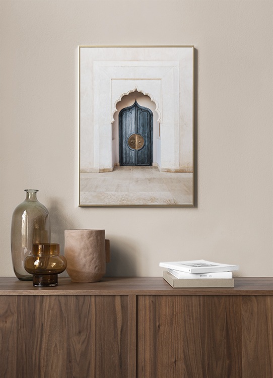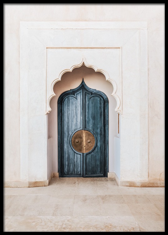 Dizajn z kategórie Handpicked Fotografia modrých dverí so zlatými kľučkami a zvlnenej klenby. Architektúru Marrákešu pretkanú mnohými detailmi pozná snáď každý a my sme stále uchvátení jej krásou! Tento plagát je súčasťou kolekcie Studio Amara z dielne Desenio Design Studio a vznikol v Marrákeši.