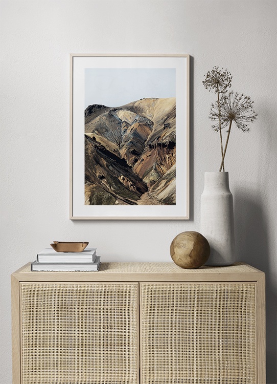Dizajn z kategórie Handpicked Fotografia farebných hôr Landmannalaugar na juhu Islandu. Preskúmajte Studio Elements, fotokolekciu z dielne Desenio Design Studio, ktorá vznikala na Islande.