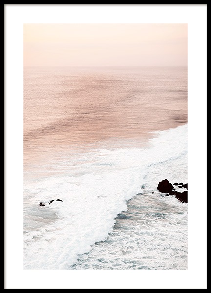 Od 9,10 €Plagát piesočnatej cesty vedúcej cez zelenú trávu k pokojnému moru. Obloha pri západe slnka žiari jemnými béžovými a ružovými tónmi – ideálne nástenné umenie pre pokojný domov.