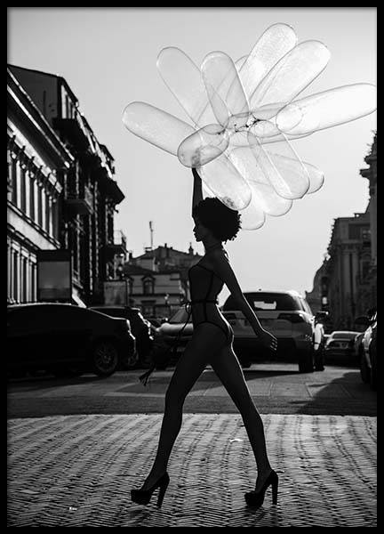 Woman Balloons Plagát