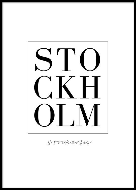 Poster, affisch med STOCKHOLM. Snygg texttavla.