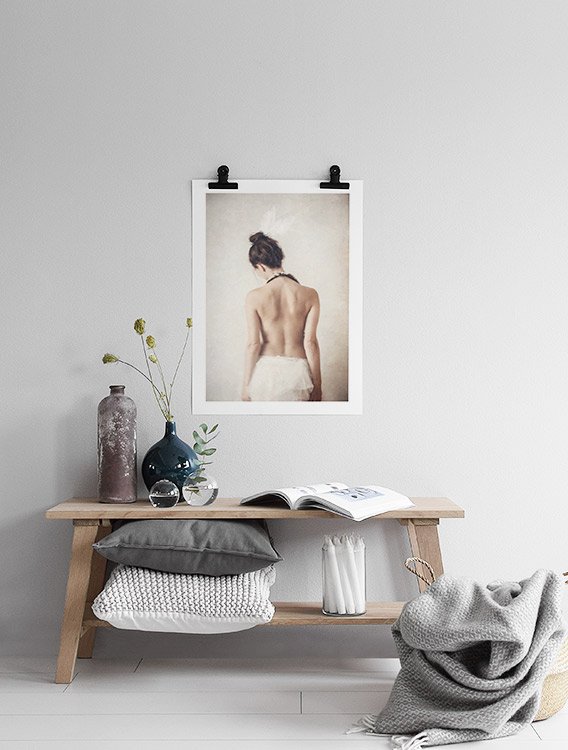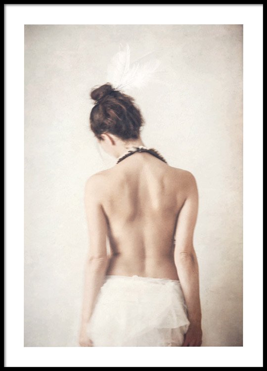 Dizajn z kategórie Handpicked Na plagáte Feathers od Tove Frank je pohľad na ženu zozadu. Tove Frank vyrastala s fotoaparátom v ruke a od útleho veku vedela, že chce byť fotografkou. V ponuke máme niekoľko rôznych dizajnov od Tove Frank, každý s jej podpisom v pravom dolnom rohu. Tento plagát 50 x 70 cm je vytlačený na papieri gramáže 300, ktorý je odolný voči starnutiu, prírodnej bielej farby. Plagát má „vsadenú“ paspartu, ktorá obraz elegantne lemuje.