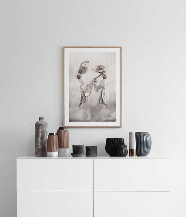 Dizajn z kategórie Handpicked Fotografické umenie Tove Frank sa stalo nesmierne populárnym, chápeme prečo! Na plagáte Spirit Flight sú dve ženy v bielom na abstraktnom pozadí. Tove Frank už dlhé roky pracuje ako fotografka. Jej plagáty a obrazy jasne prezentujú jej výrazné vyjadrovanie a mnohým sa veľmi páčia. V ponuke máme niekoľko fotoplagátov a obrazov od Tove Frank. Plagát má „vsadenú“ paspartu, ktorá obraz elegantne lemuje.