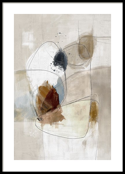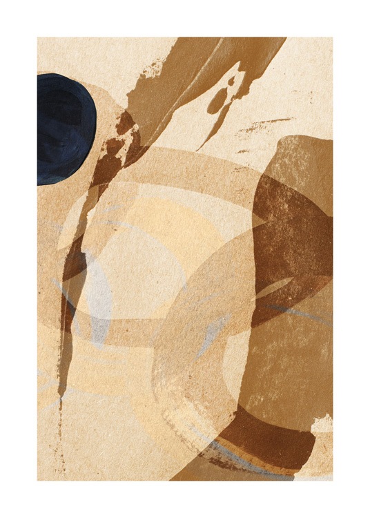 Dizajn z kategórie Handpicked Abstraktná maľba s béžovými a hnedými ťahmi štetca a čiernym kruhom na béžovom škvrnitom pozadí. Skombinujte tento moderný, zemitý plagát s Umber Abstraction No1 pre ladiacu dvojicu!