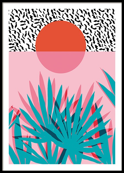 Pink Sky Palm Trees Plagát