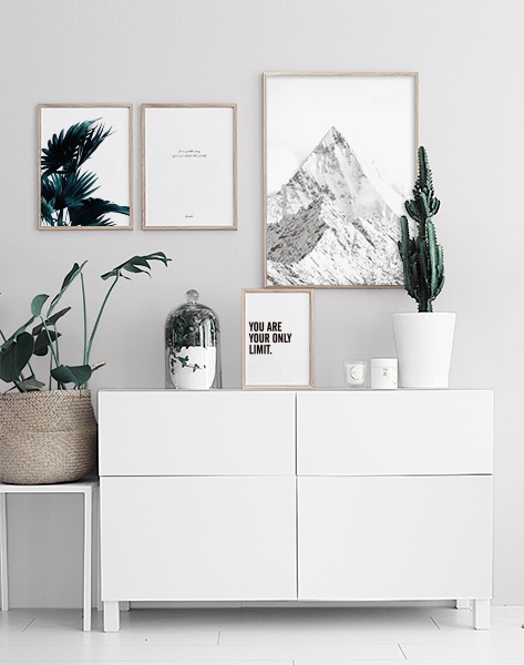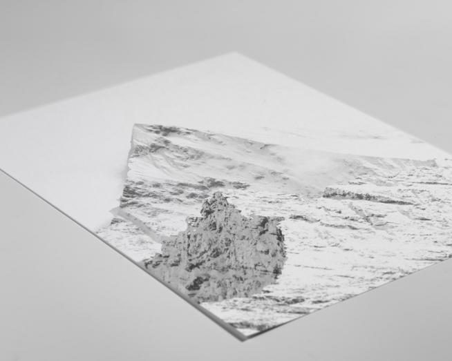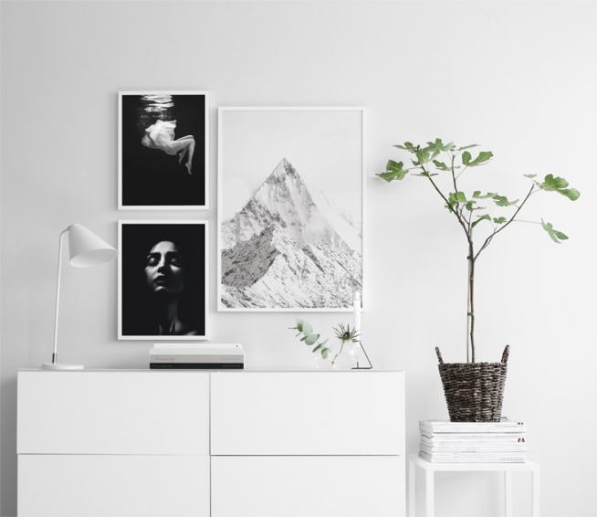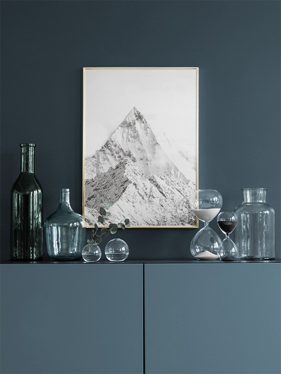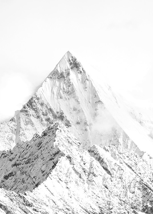 Poster med svartvitt naturfoto. Fotokonst med berg och snö.