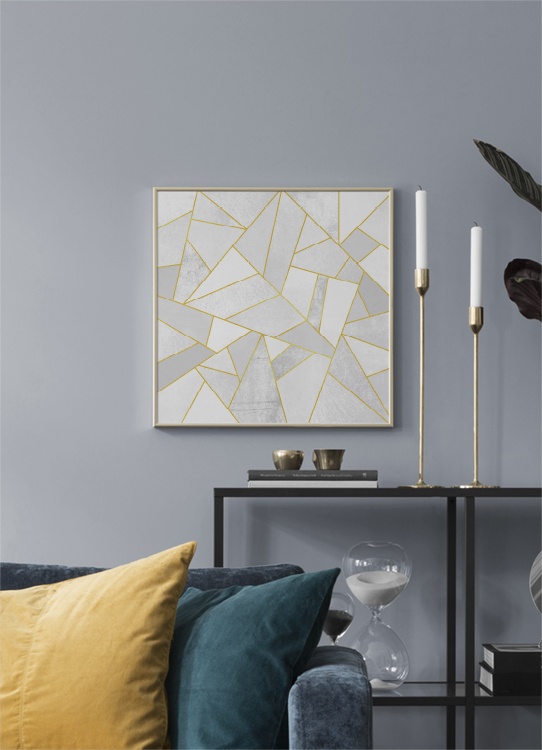 Dizajn z kategórie Handpicked Grafický plagát s bielym a sivým geometrickým vzorom a zlatými líniami vytvorila Elisabeth Fredriksson. Tento plagát s čistými líniami vyzerá skvele ako dekorácia doma na stene a dá sa štýlovo kombinovať s ďalšími plagátmi do trendy zostavy obrazov. Ktoré plagáty si vyberiete na doplnenie koláže?