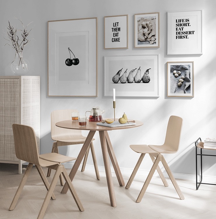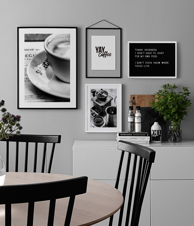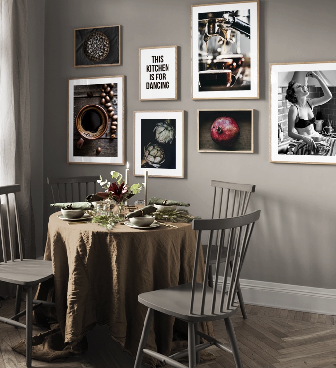 Či už dávate prednosť zariadeniu kuchyne vo vidieckom štýle, čistému vzhľadu alebo rustikálnejšej atmosfére, garantujeme, že máme plagát s kuchynským motívom práve vás a pre vašu kuchyňu. V kuchyni sa nám páčia dekorácie v jemnejších, tlmenejších farbách, ktoré prinesú hrejivý pocit a vytvoria zabývanú atmosféru. Skutočne osobný a živý dojem vytvoríte použitím byliniek, ovocia, dosiek na krájanie a receptárov, ktoré ladia s vašou zostavou obrazov. Nájdite tu inšpiráciu pre kuchynskú stenu!